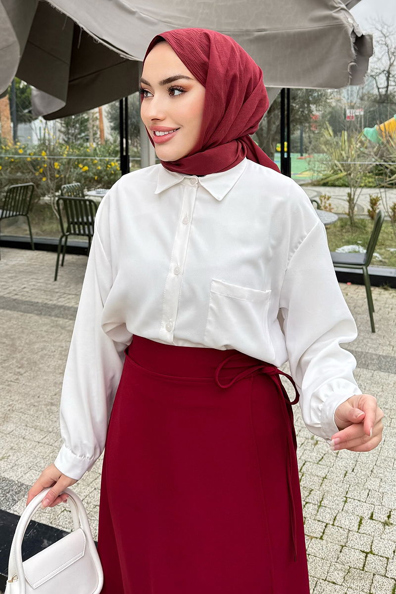 This elegant and modern Tie-Detailed Crepe Skirt blends the grace of modest clothing with contemporary fashion. Suitable for all seasons, this skirt is made from delicate Dabıl Crepe fabric. Its lining-free design and back zipper offer both comfort and style, while adjustable side ties accommodate different body types. The skirt is integrated with a top piece, creating a cohesive look with its stitching details. It is recommended to be washed gently at 30 degrees.