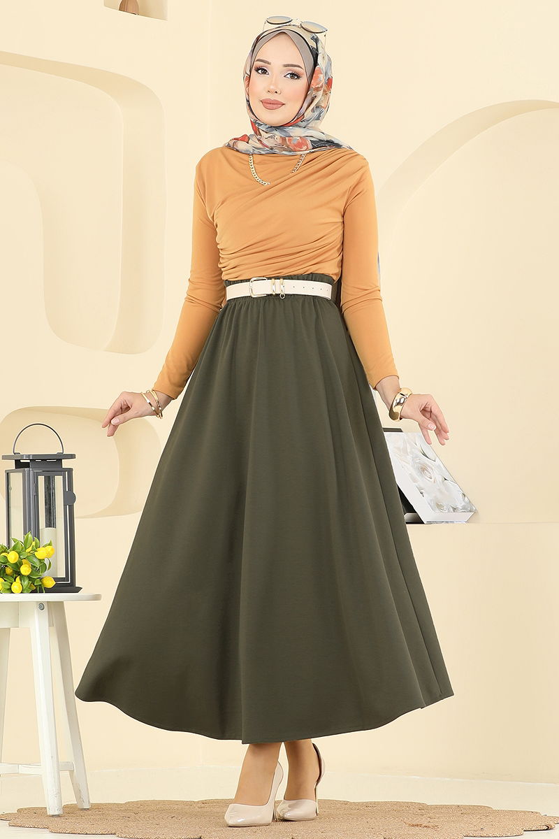 Product Feature : It is a new season hijab fashion product. Unlined. This product is not a combo. Belt is not included. The skirt waist is elastic. There may be a tonal difference in the product due to concept photo shoots.