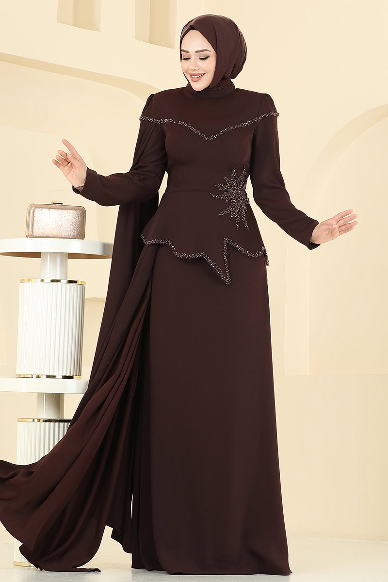 SUAL Bluz Görünümlü Şık Abiye Kahve