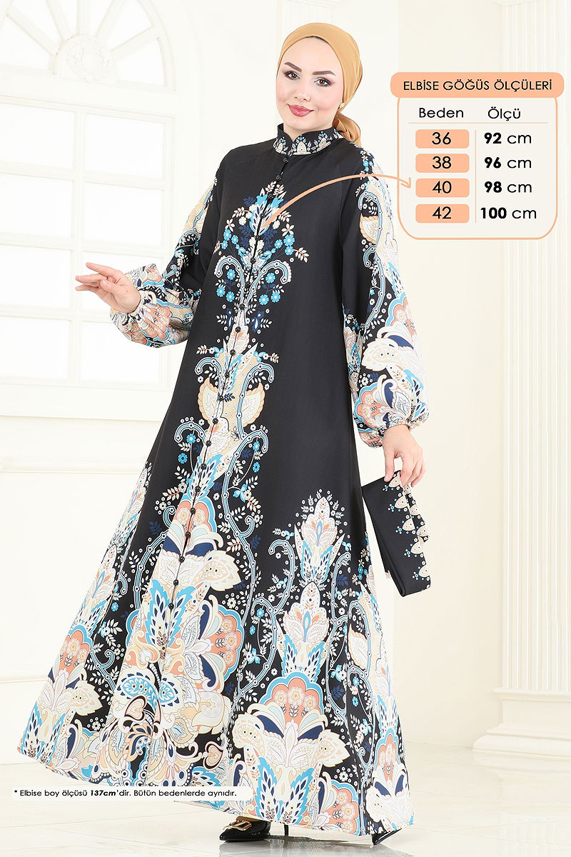 Desenli Atlas Elbise klasik ve modern dokunuşların harmanlandığı bir tesettür ürünüdür. Dört mevsim rahatlıkla kullanabileceğiniz bu elbise, 30 derecede hassas yıkama ile temizlenebilir. Yumuşacık atlas kumaşı, yarım hakim yaka ve ön düğme detayları ile dikkat çeker. Astarsız yapısı ve elastik manşetleri ile konfor sunar. Ürüne dahil olan ve isteğe bağlı kullanılabilen kemer, şıklığınıza şıklık katar. Modelin üzerindeki 38 bedendir ve her tarza uyum sağlar.
