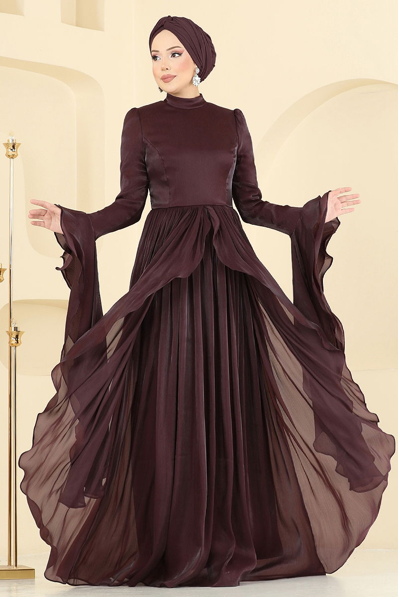 SUAL Drape Detaylı Fırfırlı Abiye Kahve