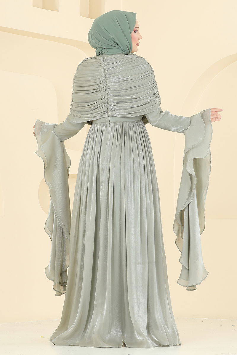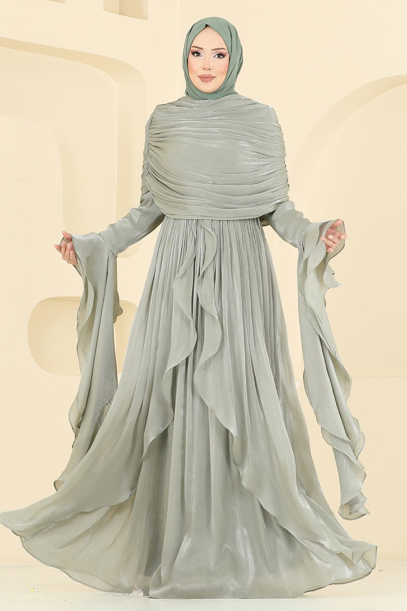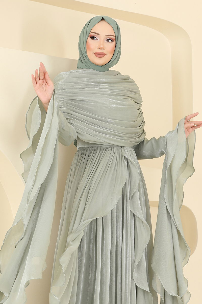 SUAL Drape Detaylı Fırfırlı Abiye 5398DMNK1166 Mint