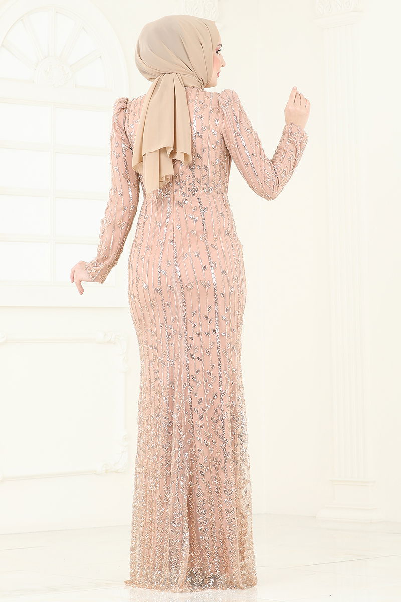 ميزة النسيج : مصنوع من قماش ساتان مطرز بالخرز من الدرجة الأولى.