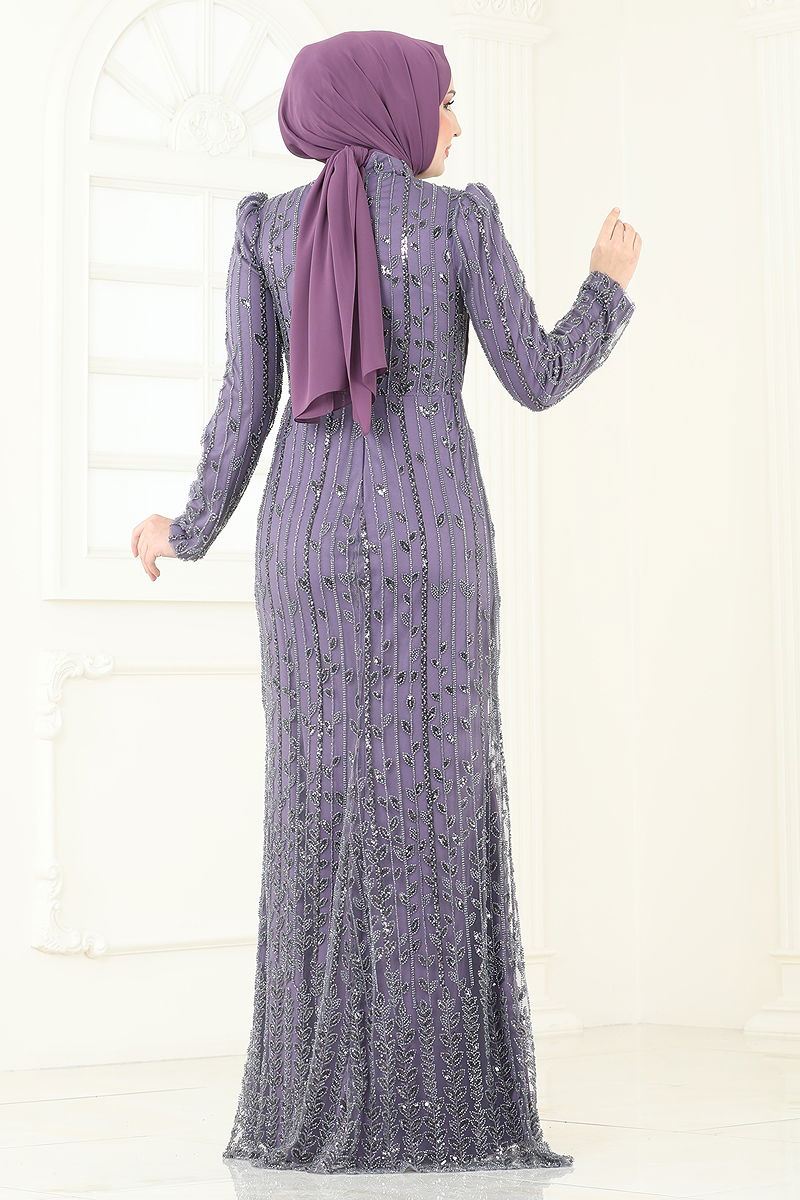 SUAL Drapeli İşlemeli Abiye Koyu Lila
