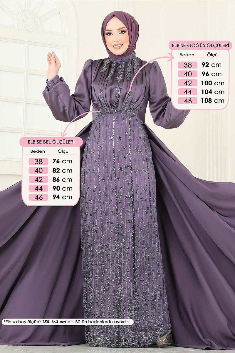 SUAL Drapeli Pelerin Abiye Koyu Lila