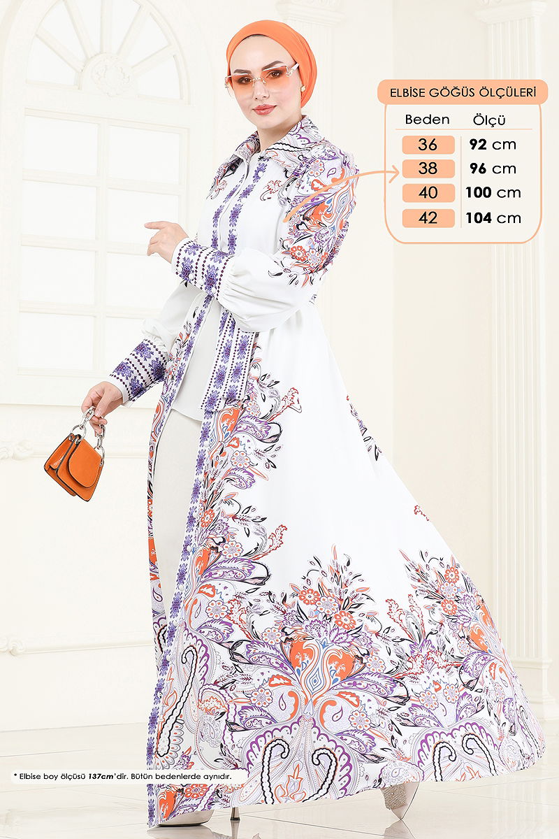 Şıklığı ve rahatlığı bir arada sunan Etnik Desenli Elbise, tesettür giyime özel olarak tasarlanmıştır. Dört mevsim boyunca keyifle kullanabileceğiniz bu elbise, 30 derecede hassas yıkama ile temizlenebilir. Gömlek yaka ve önden düğmeli tasarımıyla pratik bir kullanım sunar. Astarsız oluşu, hafif ve konforlu bir yapı sağlar. Üründe kullanılan kemer, şıklığınızı tamamlar; dikişsiz orta kısım ile dalgalanmayı önler. Manşet düğmeleri ise fonksiyonel bir detay olarak öne çıkar.