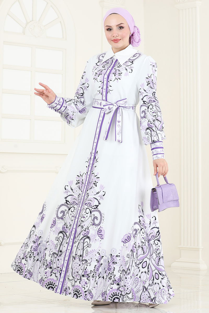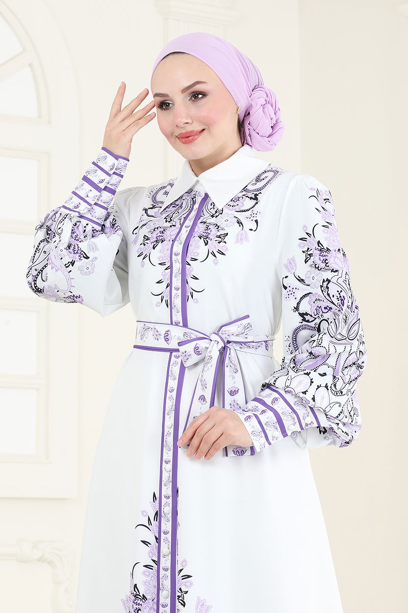 SUAL Etnik Desenli Elbise Desen2 Lila