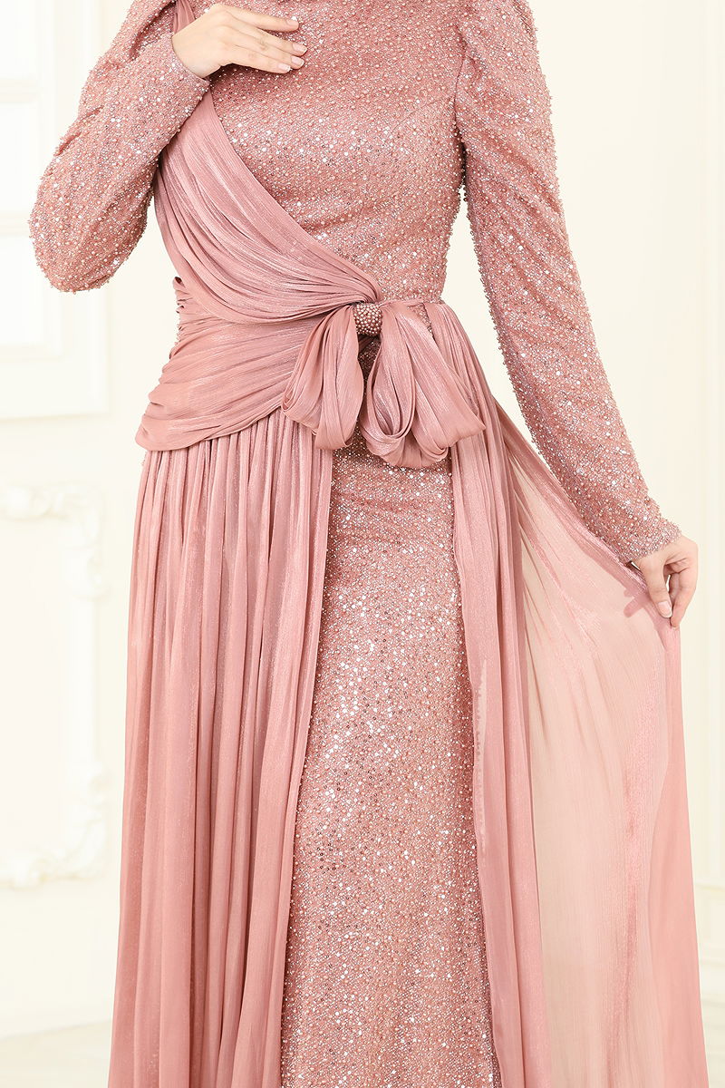 SUAL İşlemeli Kuyruk Detay Abiye Gül Kurusu