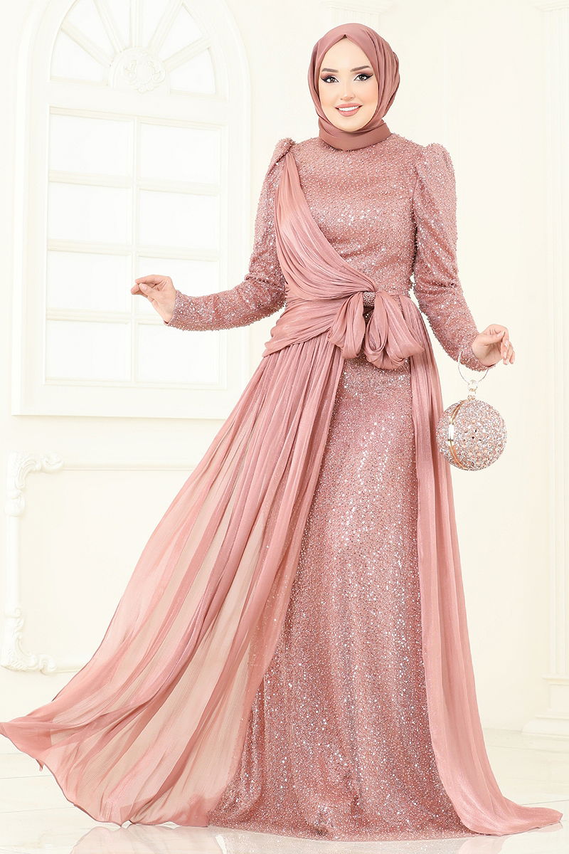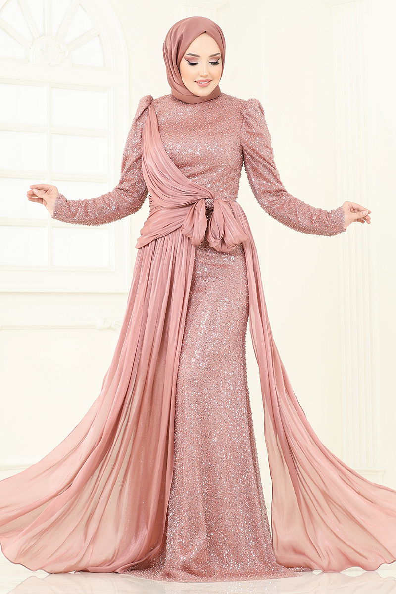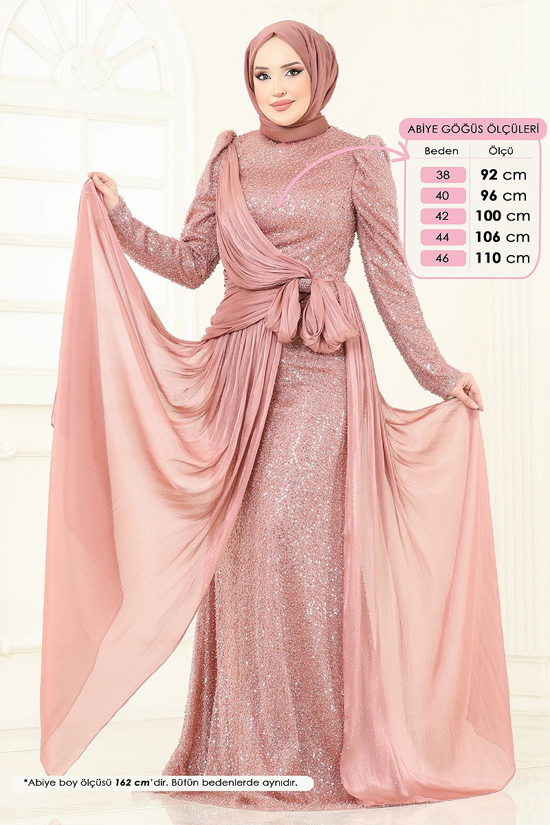 SUAL İşlemeli Kuyruk Detay Abiye 5076D170 Gül Kurusu