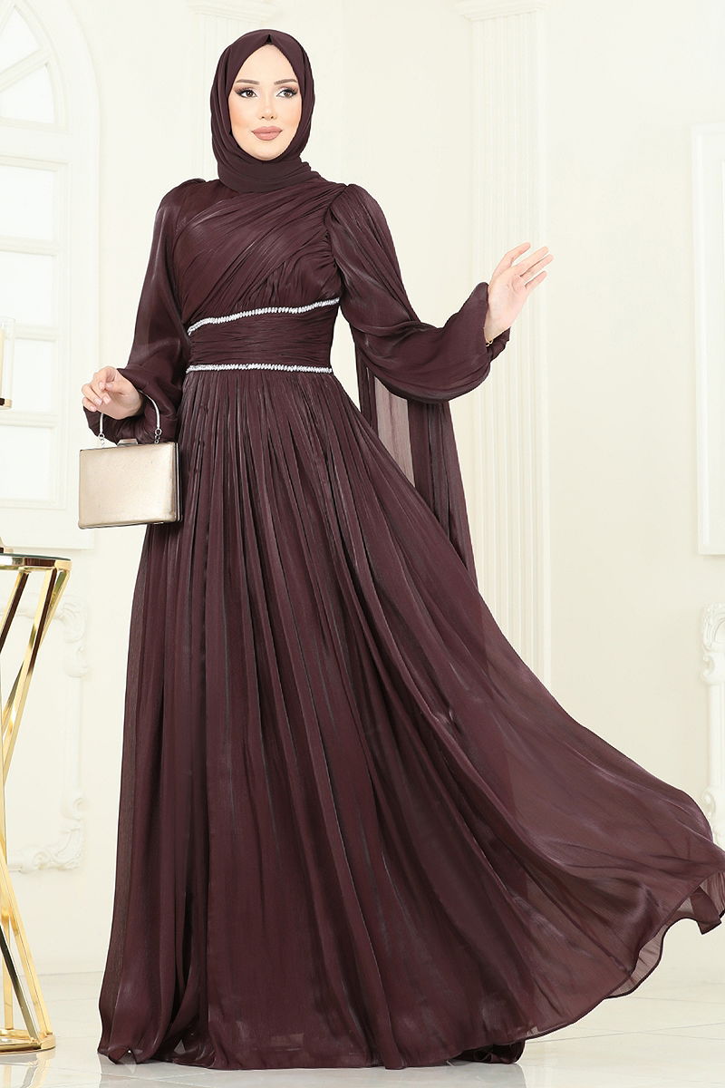 SUAL Kuşak Görünümlü Organze Abiye Acı Kahve