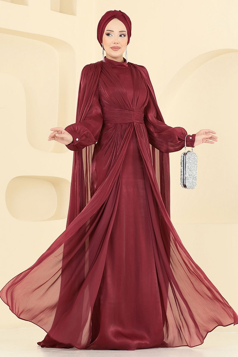 SUAL Kuşak Görünümlü Pelerinli Abiye 5447D170 Bordo