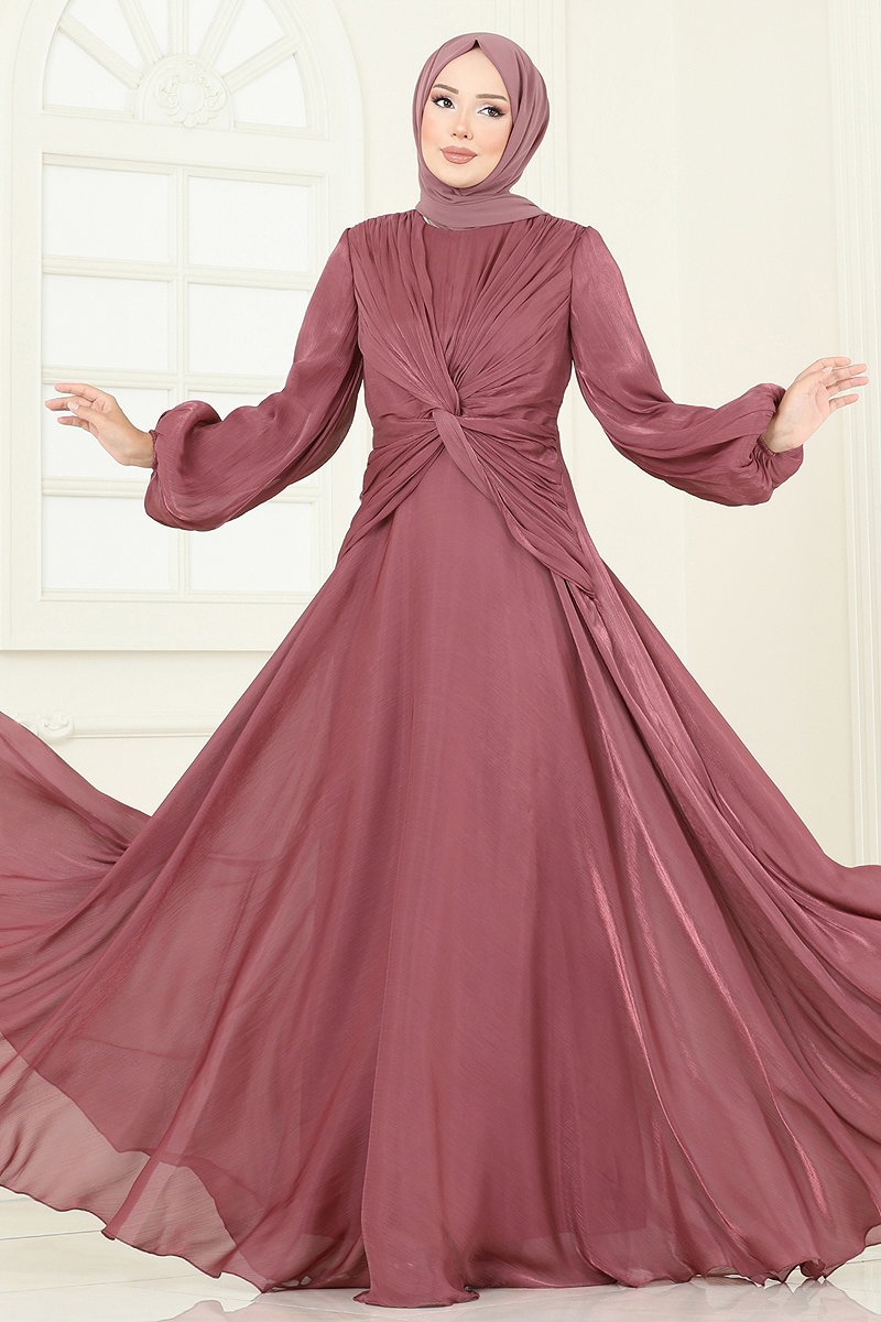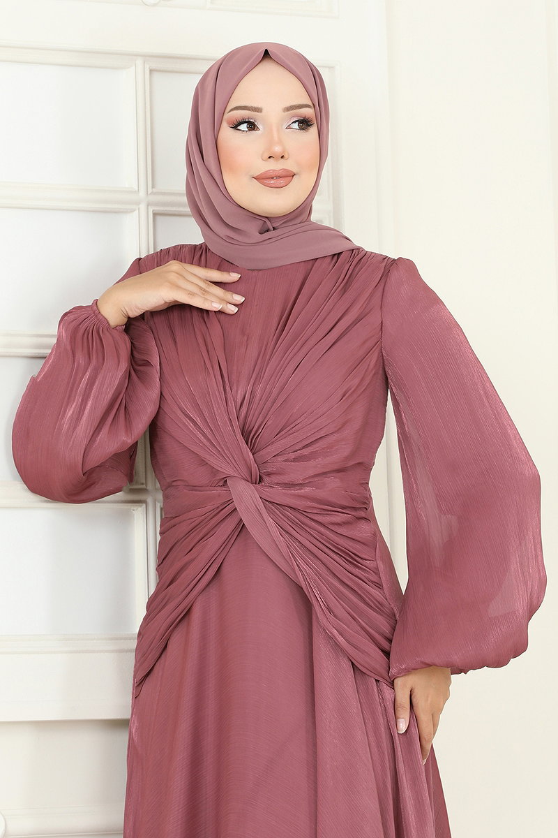 SUAL Önü Drapeli Şifon Abiye Gül Kurusu