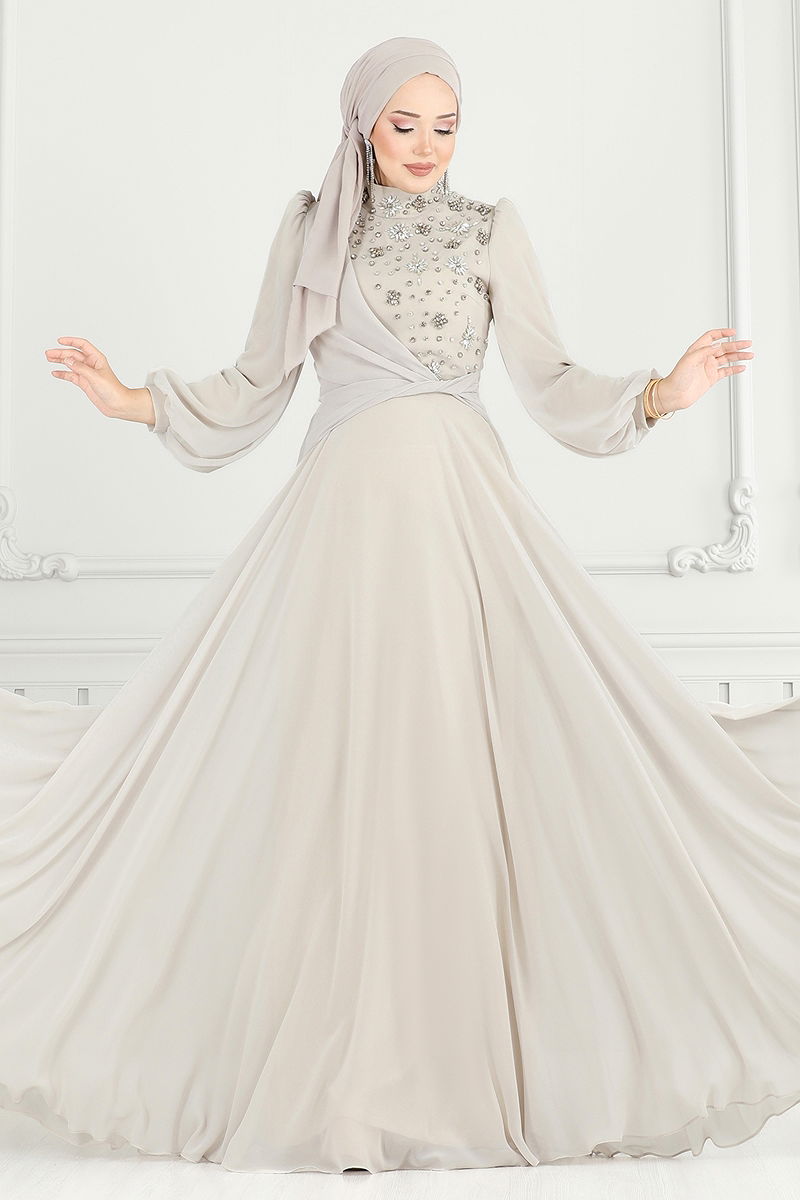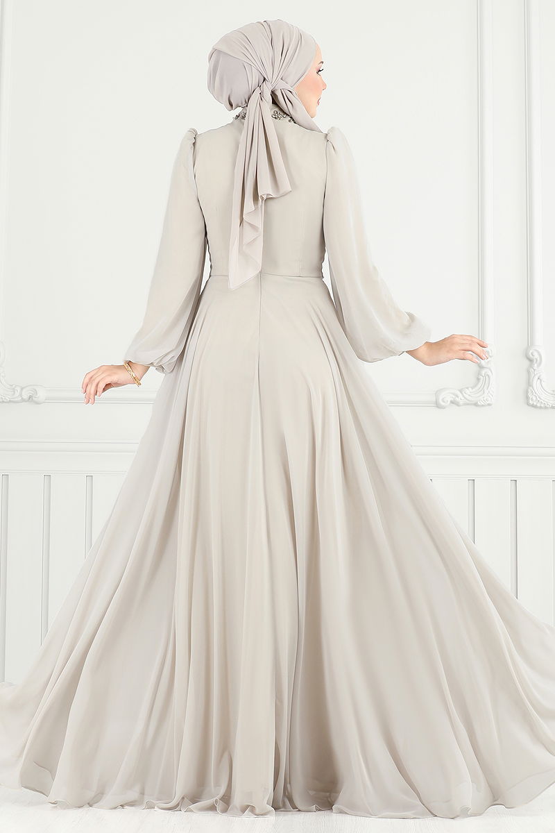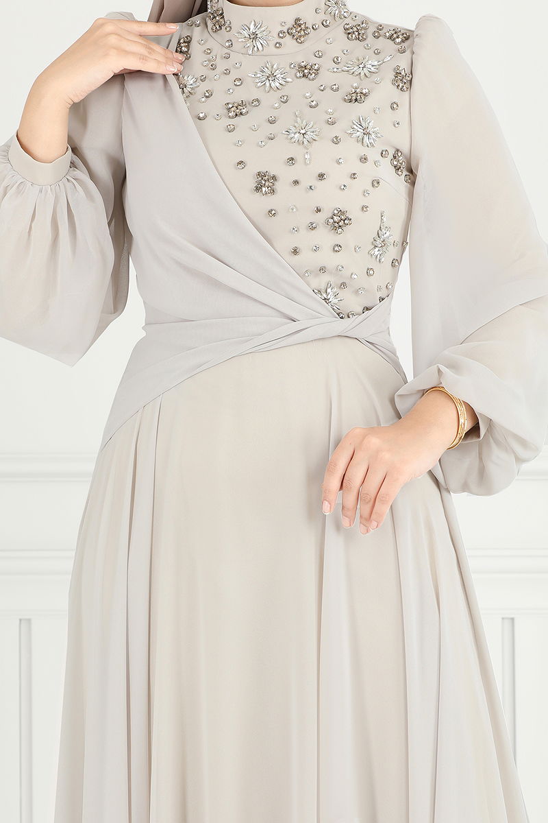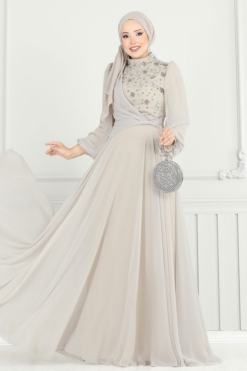 SUAL Önü Taşlı Şifon Abiye 4923SRH861 Taş
