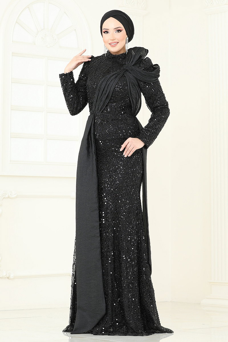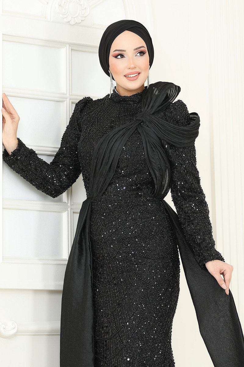 Etkileyici bir görünüm için özel olarak tasarlanmış SUAL Pul İşlemeli Abiye, tesettür modanın zarif çizgilerini temsil ediyor. Dört mevsim boyunca her türlü özel gün ve etkinliklerinizde rahatlıkla tercih edebilirsiniz. Organze kumaş üzerine işlenmiş pul payetler ile göz kamaştırıcı bir şıklık sunar. Organze pelerin detayı dikilidir.Boncuk detayları dikilidir..Astarlı yapısı ve sırttan fermuarlı tasarımı ile konforlu bir kullanım sağlar. Kuru temizleme ile bakımı önerilen bu ürün, kemer detayı ile sofistike bir stil vadediyor. Modelin üzerindeki 38 beden örnektir ve her detayı itina ile yerine getirilmiştir.