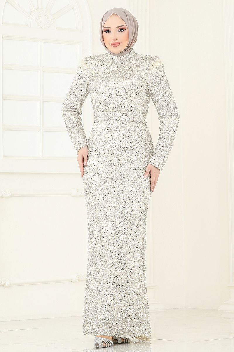 SUAL Pul Payet Detaylı Abiye model tesettür ürünüdür.Dört Mevsim sezonunda kullanılabilir.Sadece kuru temizleme yapılmalıdır.Birinci sınıf Pul Payet kumaştan imal edilmiştir.Ürün Hakim yakadır.Astarlıdır. .Ürün Sırttan fermuarlıdır.(Modelin üzerindeki ürün 38 bedendir.)Pul payet detayı dikilidir. Otriş tüyler ürüne dikilidir.Kemerin dalgalanmaması için iki ucu dikilmiş, orta kısım boş (dikişsiz) bırakılmıştır.Kemer ürüne dahildir, isteğe bağlı kullanılmayabilir.