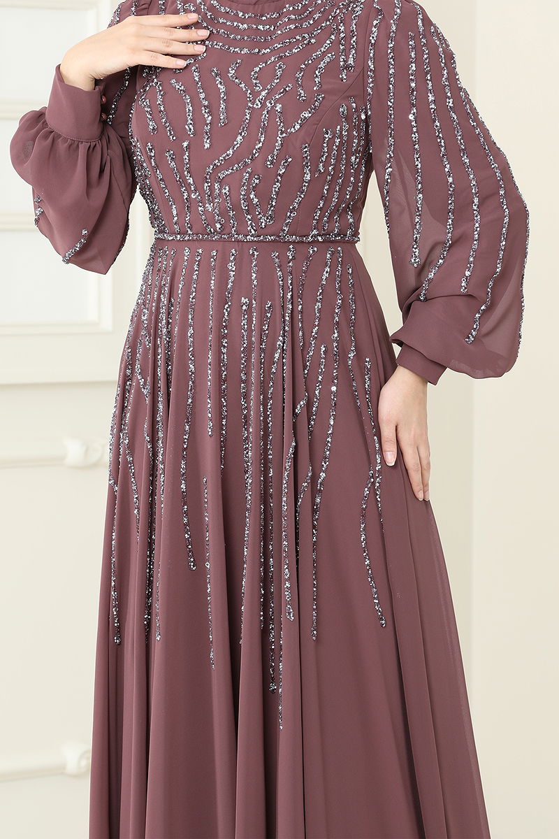 SUAL Taş Detaylı Abiye Koyu Gül Kurusu