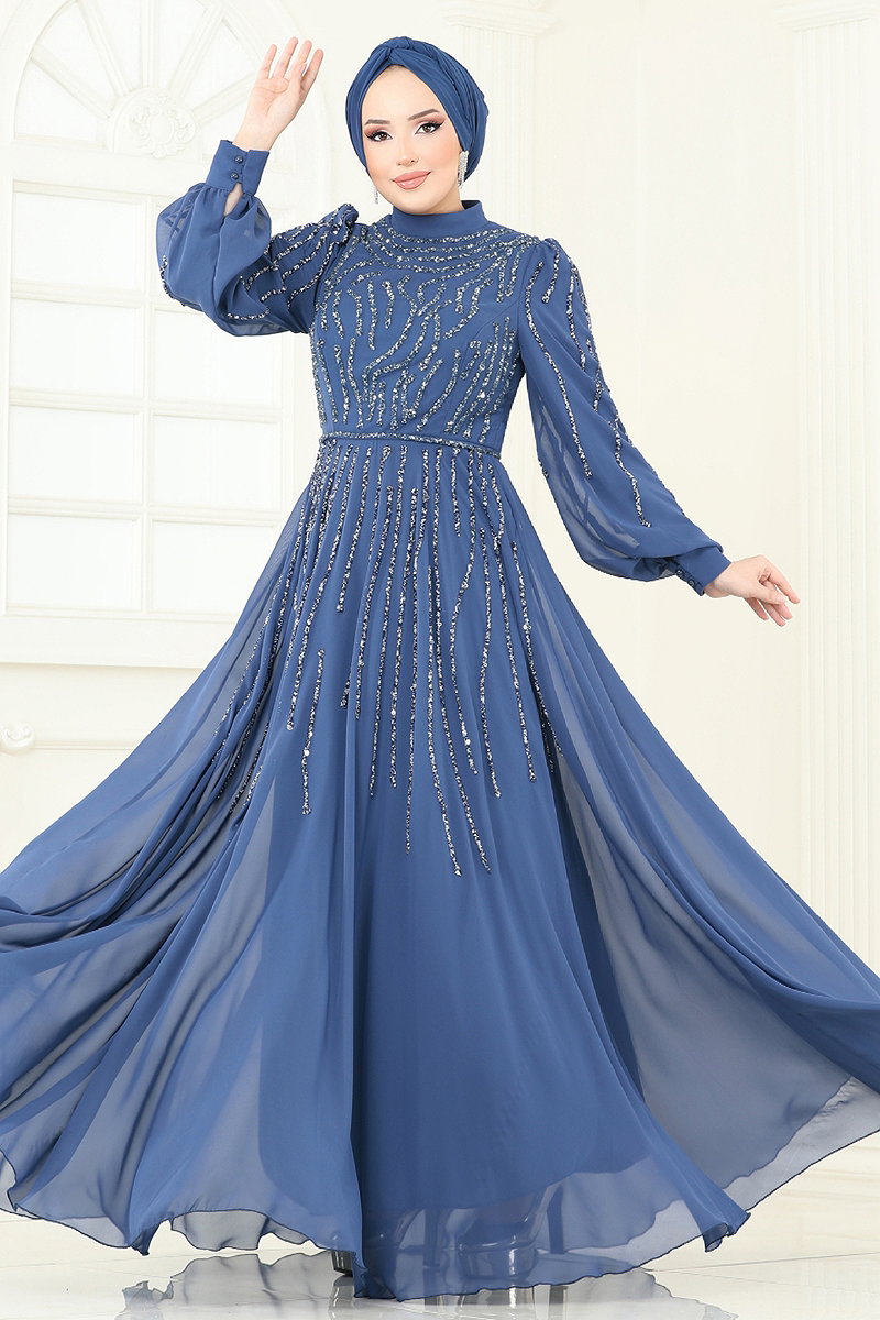 SUAL Taş Detaylı Abiye 4992D170 Mavi