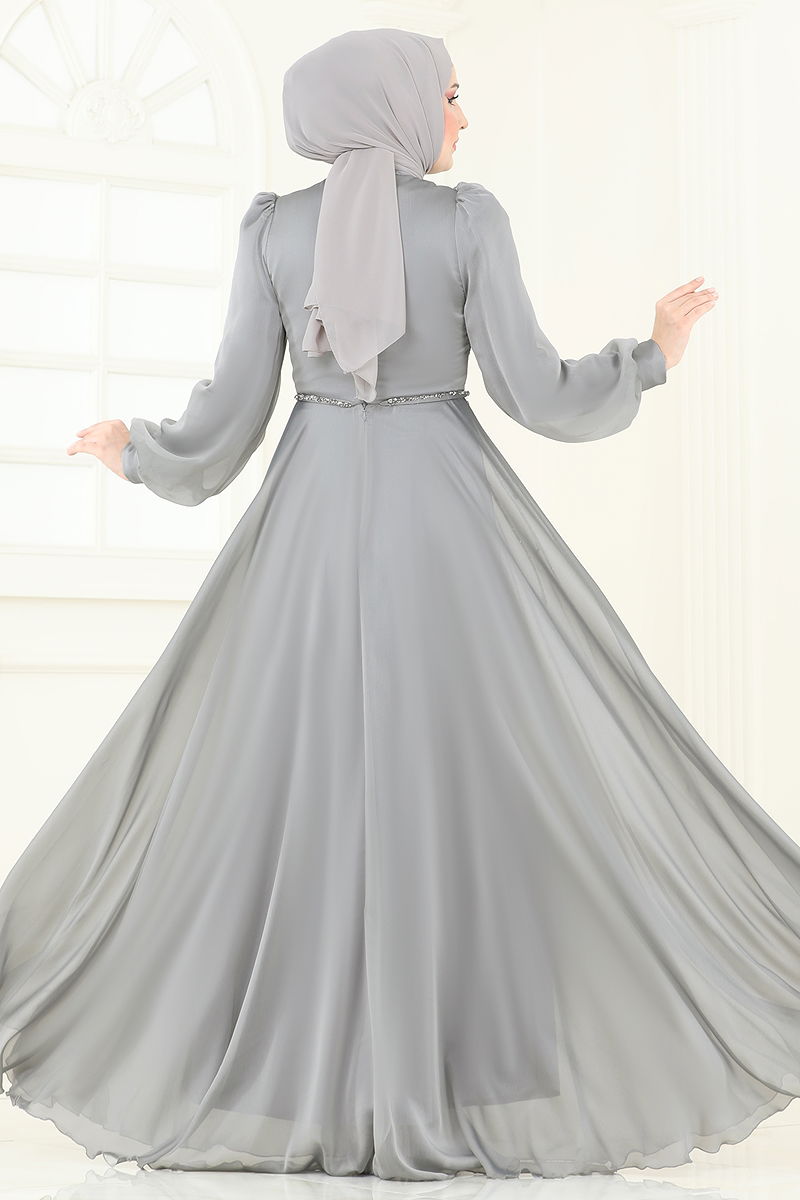 SUAL Taş Detaylı Janjan Abiye Gri