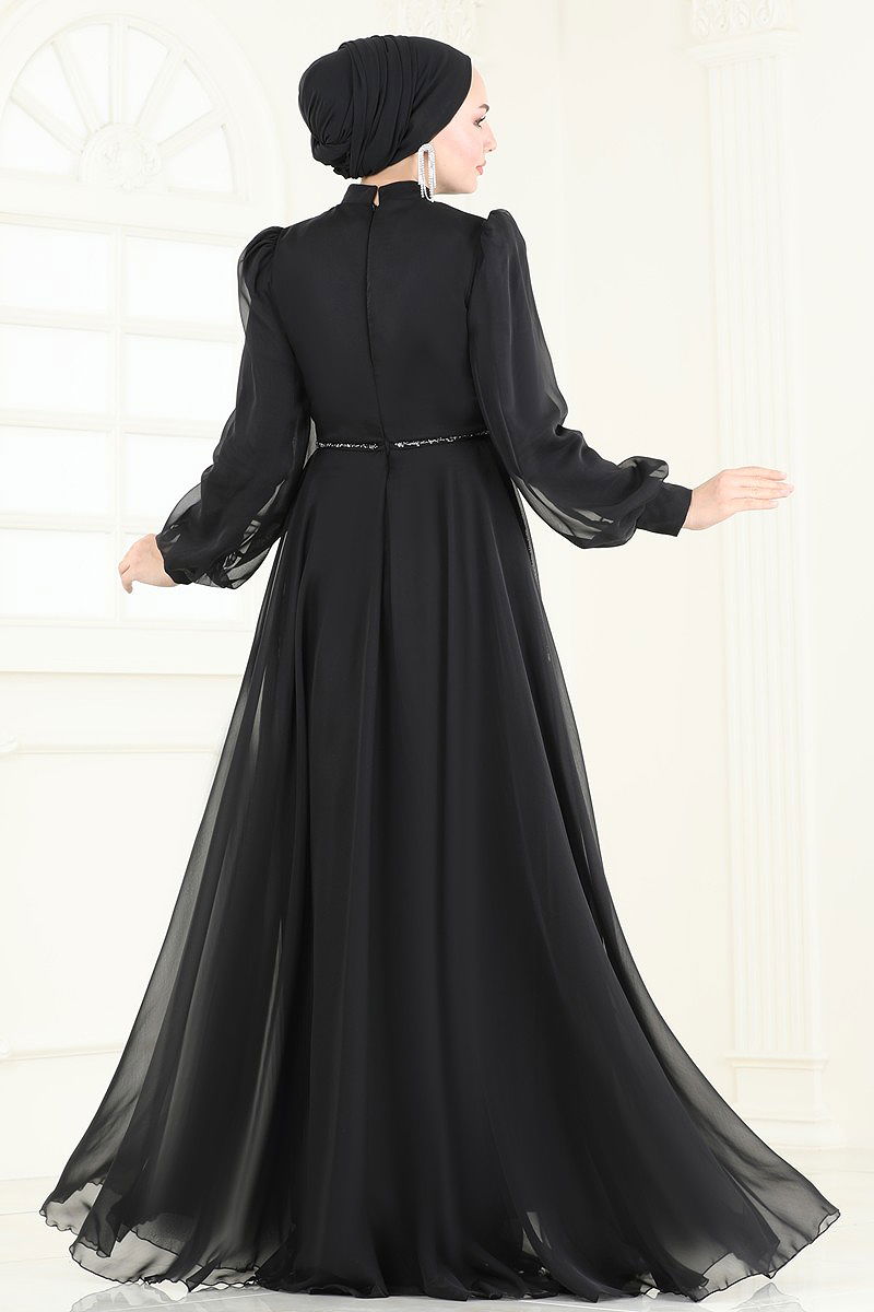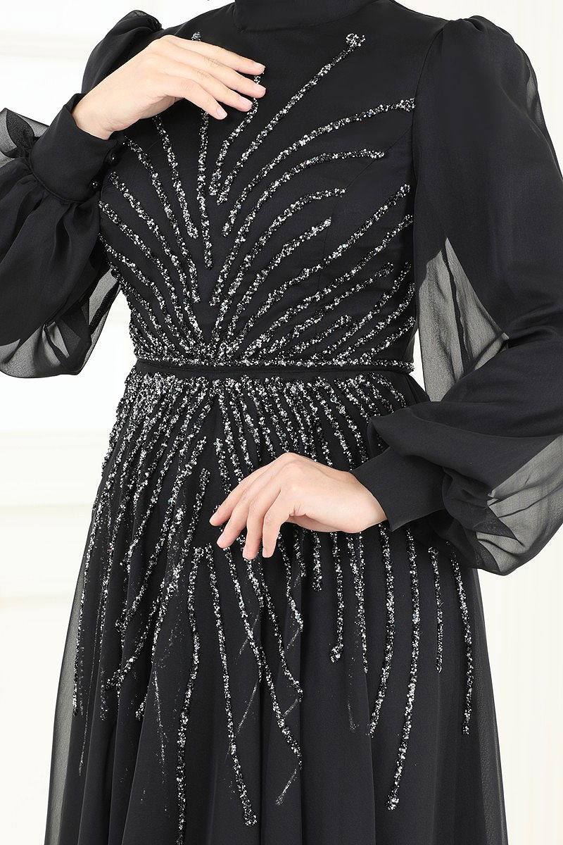 SUAL Taş Detaylı Janjan Abiye Siyah