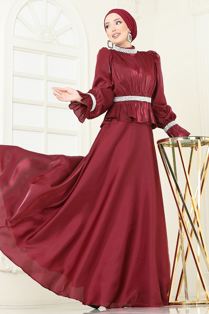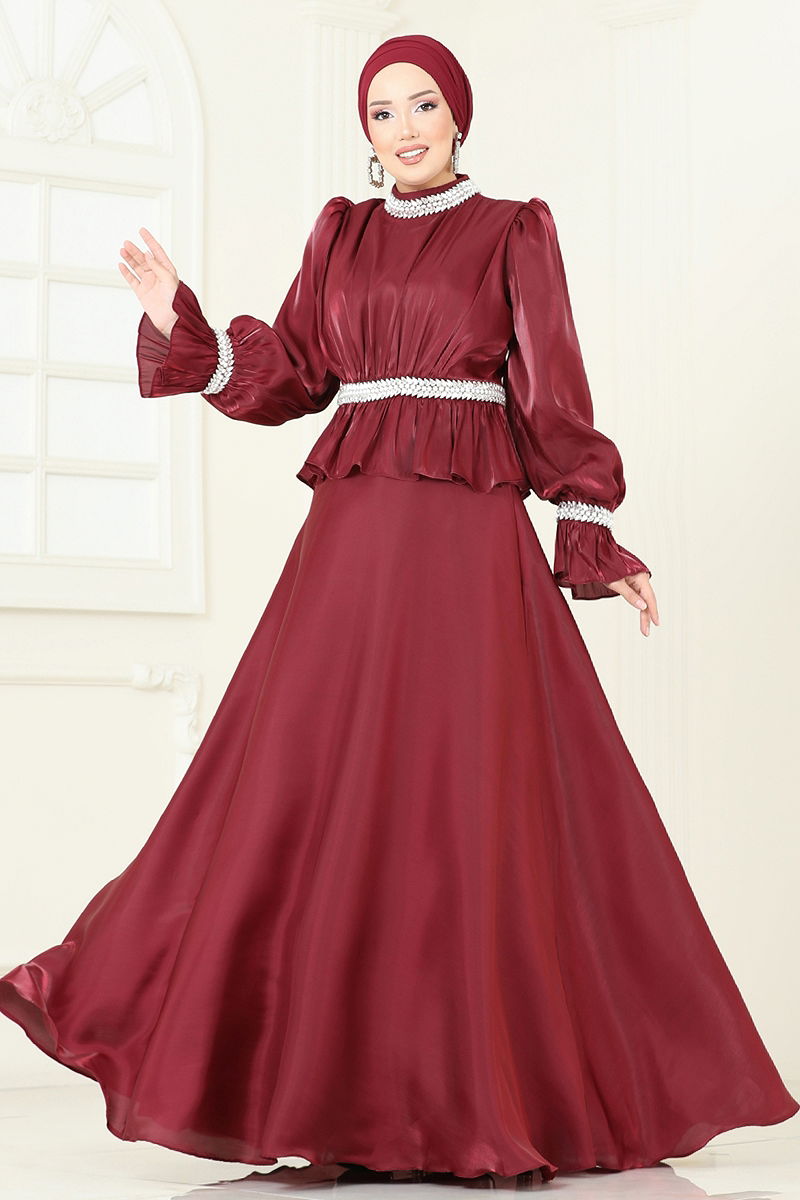 SUAL Taş İşlemeli Organze Abiye 6324LPN858 Bordo