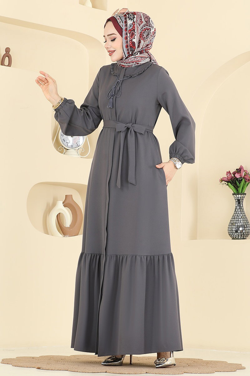 Süs Bağcıklı Dabıl Ferace Antrasit