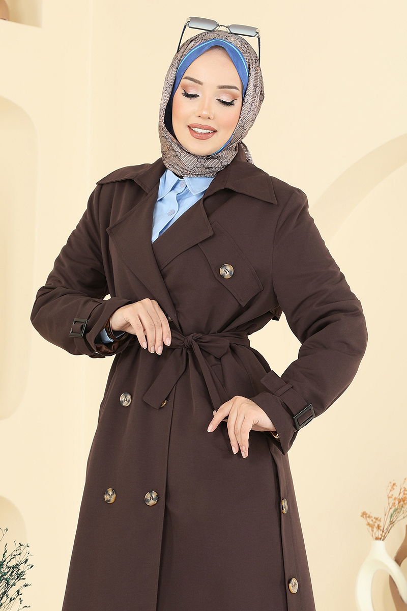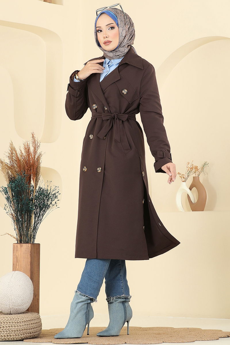 Süs Göğüs Cepli Trençkot 042OZT1013 Acı Kahve