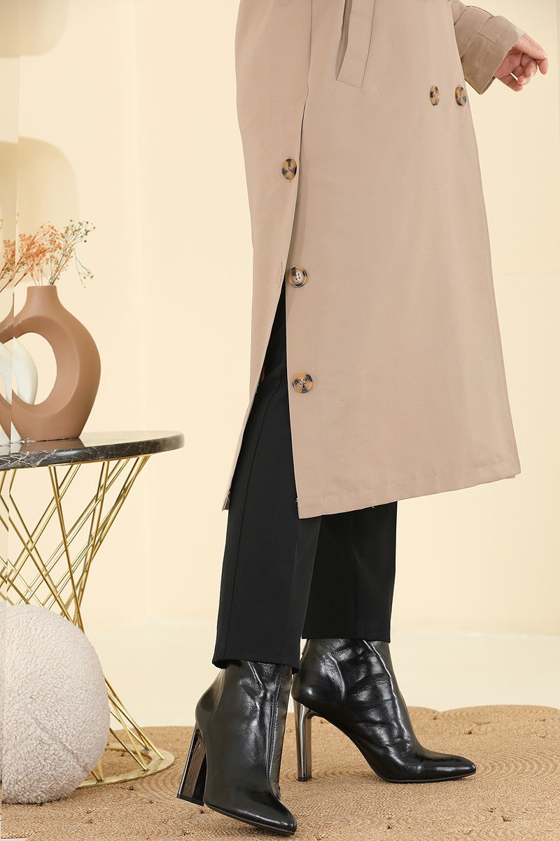 Şık ve fonksiyonel tasarımıyla dikkat çeken Süs Göğüs Cepli Trençkot, özellikle sonbahar ve kış aylarında sıcak tutacak ideal bir seçimdir. Amozon kumaşı sayesinde uzun süreli kullanıma uygun olan bu trençkot, hassas yıkama ile 30 derecede kolayca temizlenebilir. Klasik ceket yaka ve ön düğme kapatma detaylarına sahip olan model, yarım astarlıdır ve rahat bir kullanım sunar. Ayarlanabilir kemer sayesinde farklı bedenlere uyum sağlar. Hem şıklığı hem de kullanım kolaylığı arayanlar için ideal bir ürün.