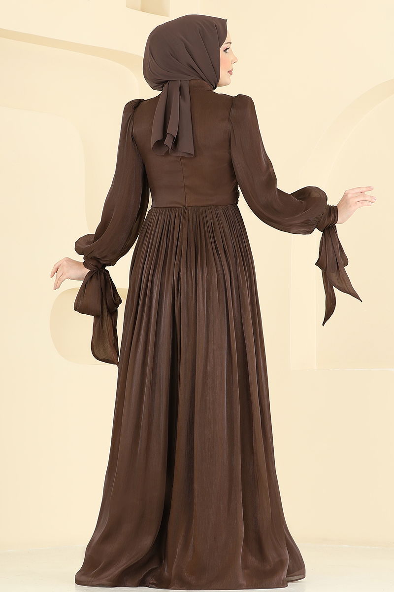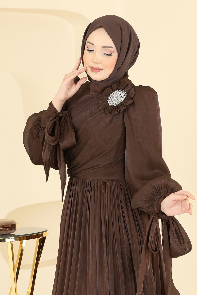 Taş Broşlu Şık Abiye 7139SAR739 Kahve