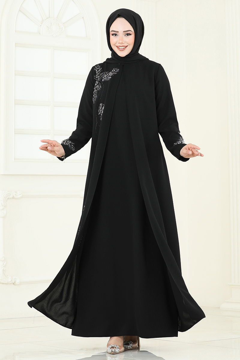 Taş Detay Abiye Elbise 2005OZT1013 Siyah