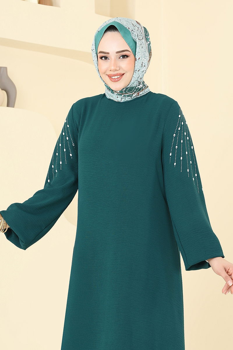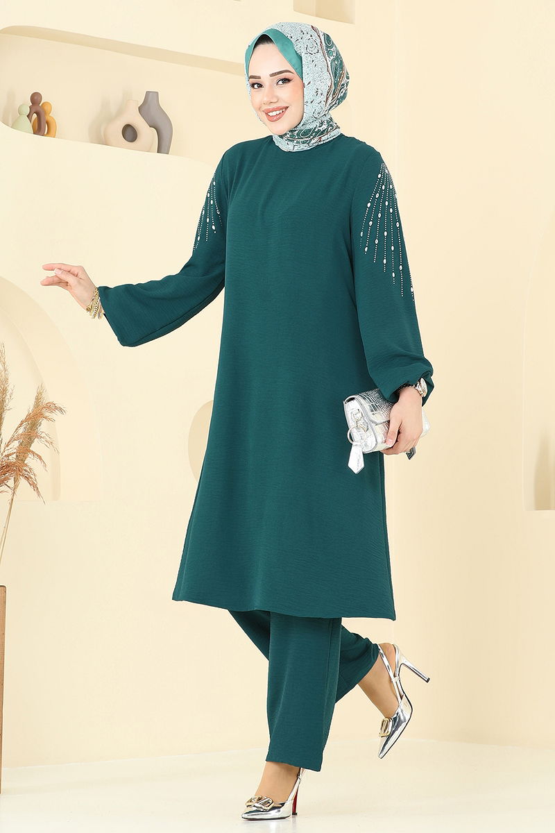 Ürün Özelliği : Yeni sezon tesettür moda ürünüdür. Sırttan kullanılabilir bir düğmesi bulunmaktadır. Ürün kafadan giyilmektedir. Ürün Bisiklet yakadır. Astarsızdır. Taşlar yapıştırmadır. Pantolon beli lastiklidir. Manşet lastiklidir. Konsept fotoğraf çekimlerinden dolayı üründe ton farklılığı olabilir.