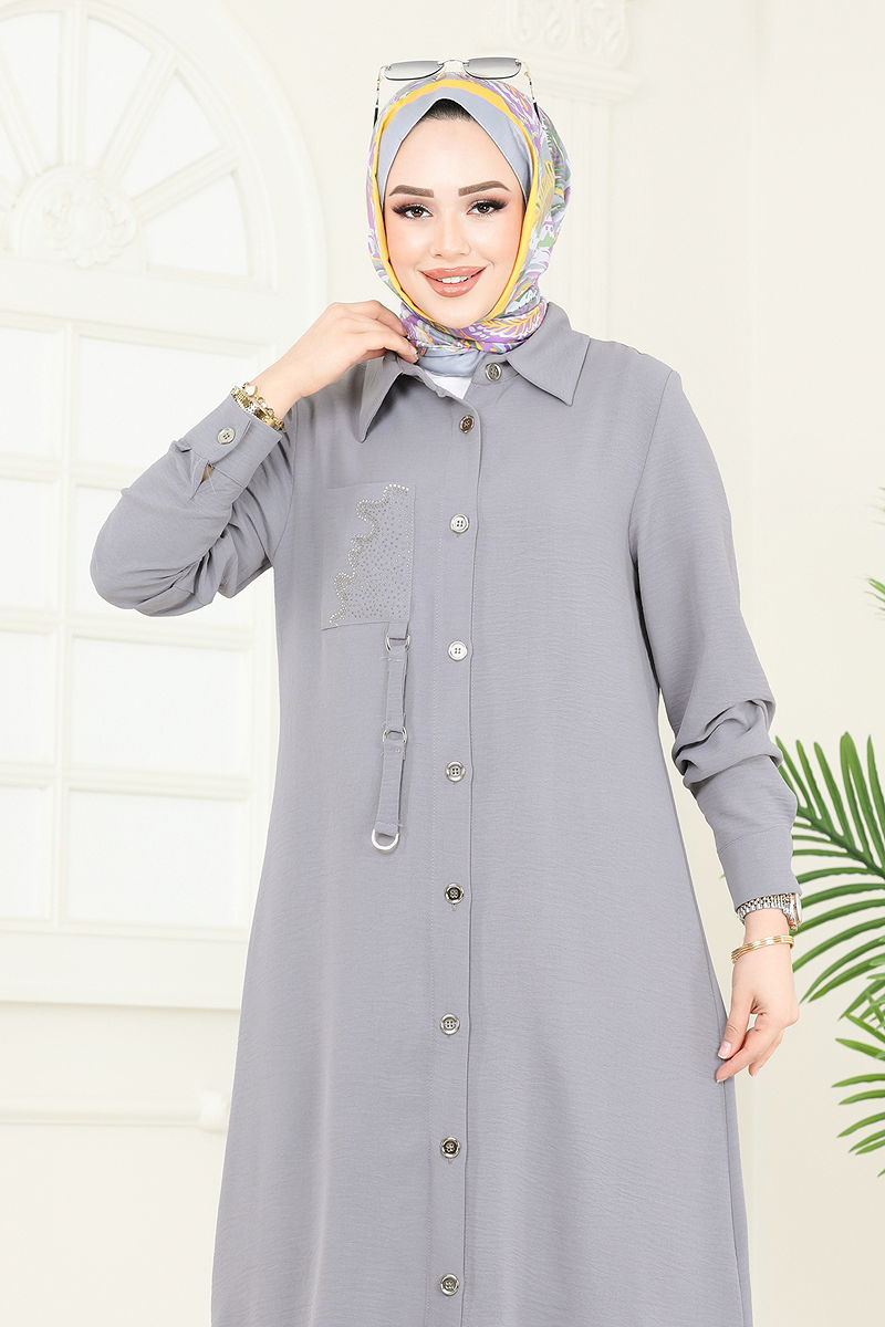 Ürün Özelliği : Yeni sezon tesettür moda ürünüdür. Ürün Gömlek yakadır. Ürün Önden düğmelidir. Tunik yandan yırtmaçlıdır.. Astarsızdır. Taşlar yapıştırmadır. Detaylar dikilidir. Göğüs cep aktiftir. Pantolon beli lastiklidir. Manşet düğmeleri aktiftir. Konsept fotoğraf çekimlerinden dolayı üründe ton farklılığı olabilir.