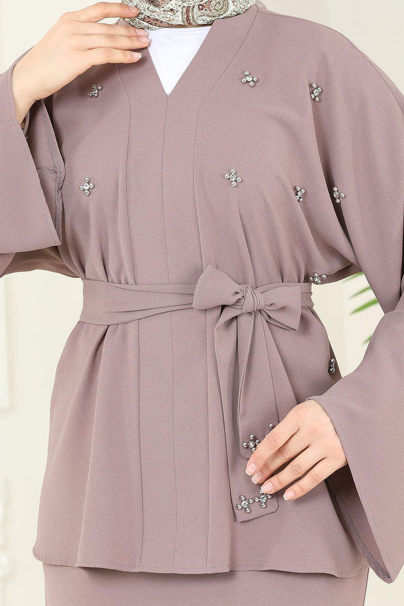 Ürün Özelliği : Yeni sezon tesettür moda ürünüdür. Ürün V Yaka yakadır. Astarsızdır. İnci detayları çakımdır. Taş detayları çakımdır. Bluz ürüne dahil değildir. Ürün kullanım amacını göstermek için bluz ile örnek kombin yapılmıştır. Kemer ürüne dahildir, isteğe bağlı kullanılmayabilir. Etek beli fermuarlıdır. Konsept fotoğraf çekimlerinden dolayı üründe ton farklılığı olabilir.