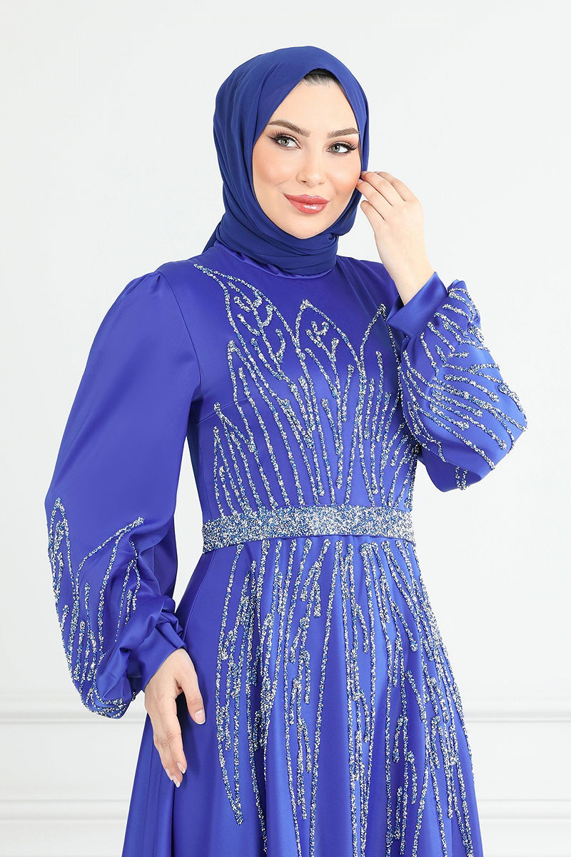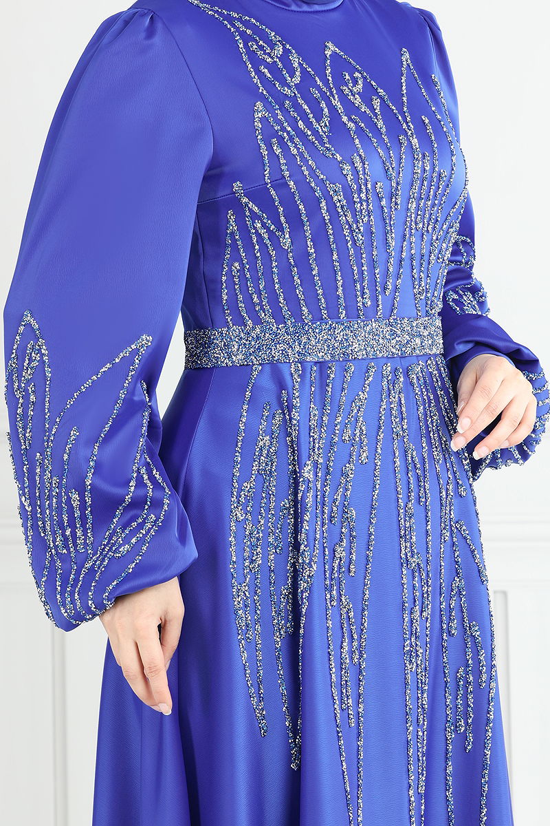 Taş Detay Saten Abiye Saks