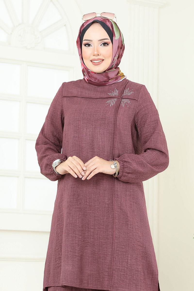 Taş Detay Sofia Takım Koyu Gül Kurusu