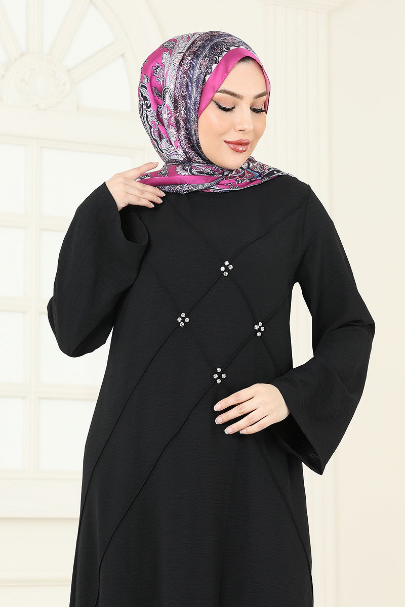 Taş Detay Tesettür Elbise 2650SL432 Siyah