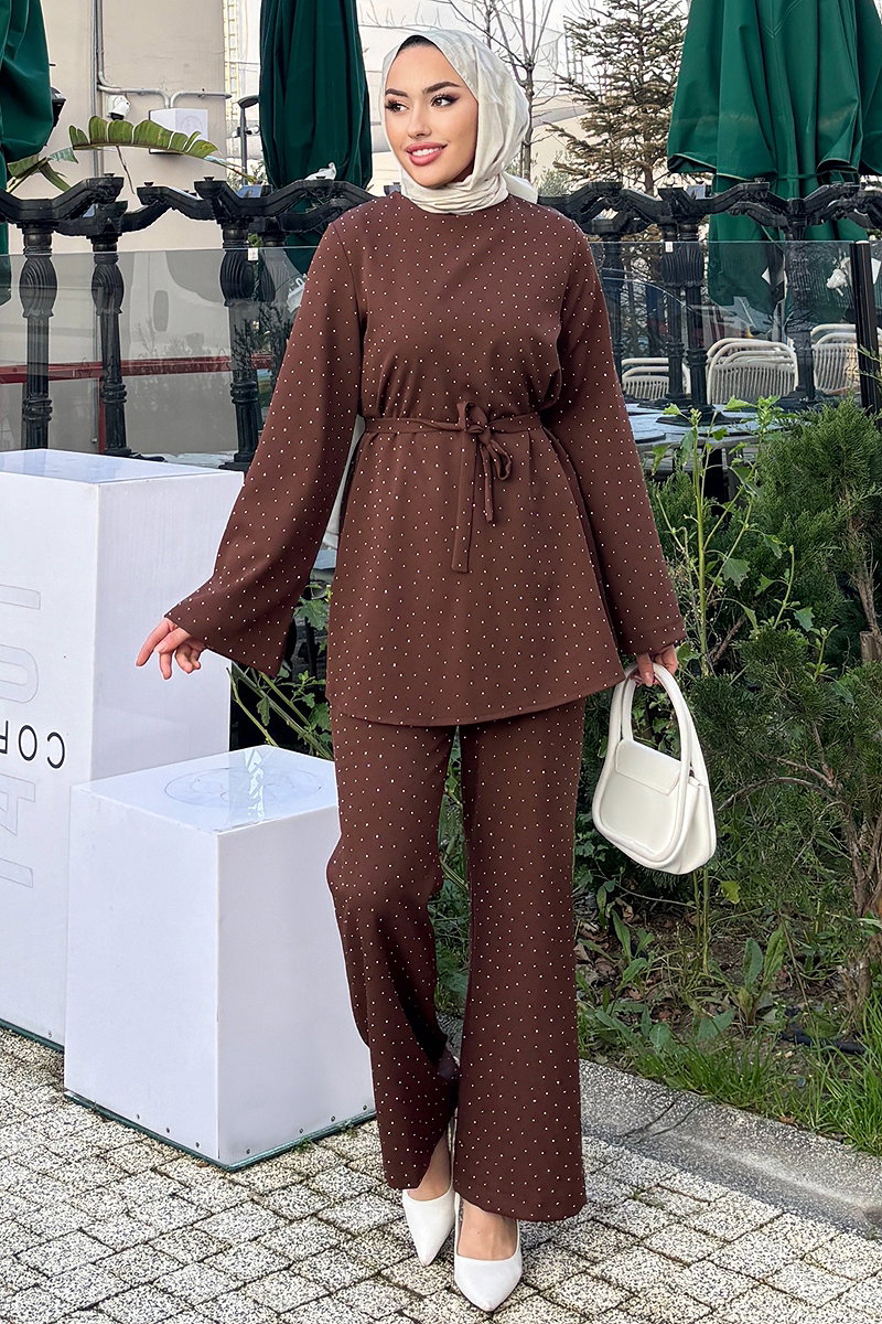 Taş Detaylı 2 li Takım 4714ALGK1170 Kahve
