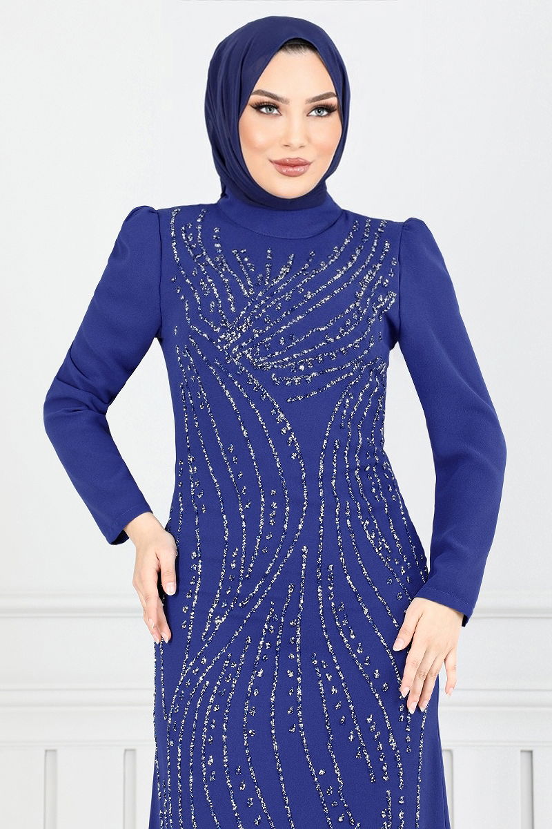 Taş Detaylı Abiye Elbise 4408MDH1093-M Saks