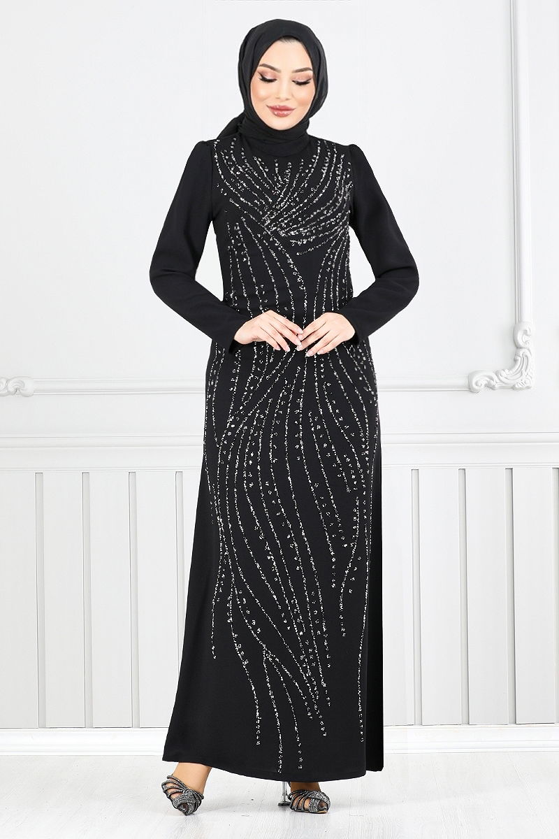 Taş Detaylı Abiye Elbise 4408MDH1093-M Siyah