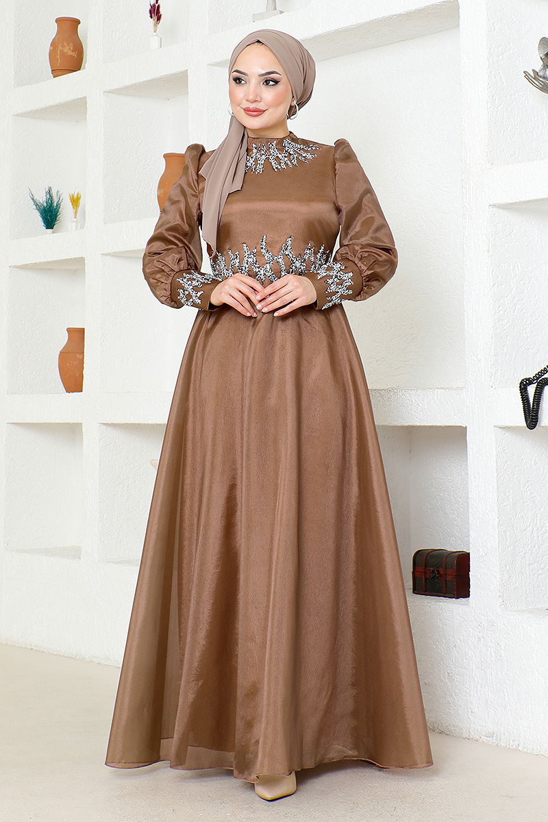 Kumaş Özelliği : Birinci sınıf Organze kumaştan imal edilmiştir. Dört Mevsim sezonunda kullanılabilir.Ürün Özelliği : Yeni sezon tesettür moda ürünüdür. Ürün Yarım Hakim yakadır. Astarlıdır. . Ürün Arkadan fermuarlıdır. Taşlar yapıştırmadır.Konsept fotoğraf çekimlerinden dolayı üründe ton farklılığı olabilir.