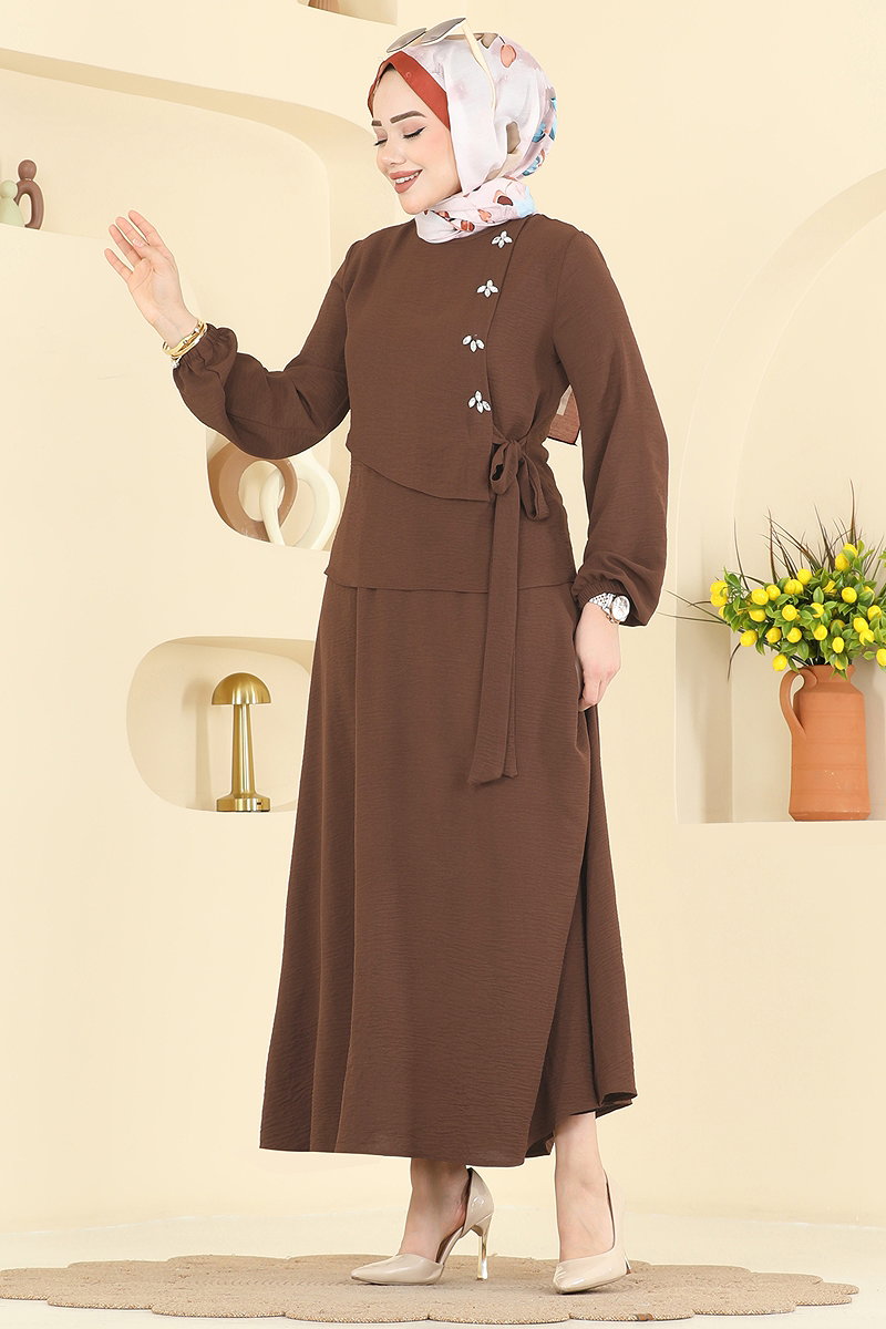Taş Detaylı Etekli Takım 2844SLK540 Açık Kahve