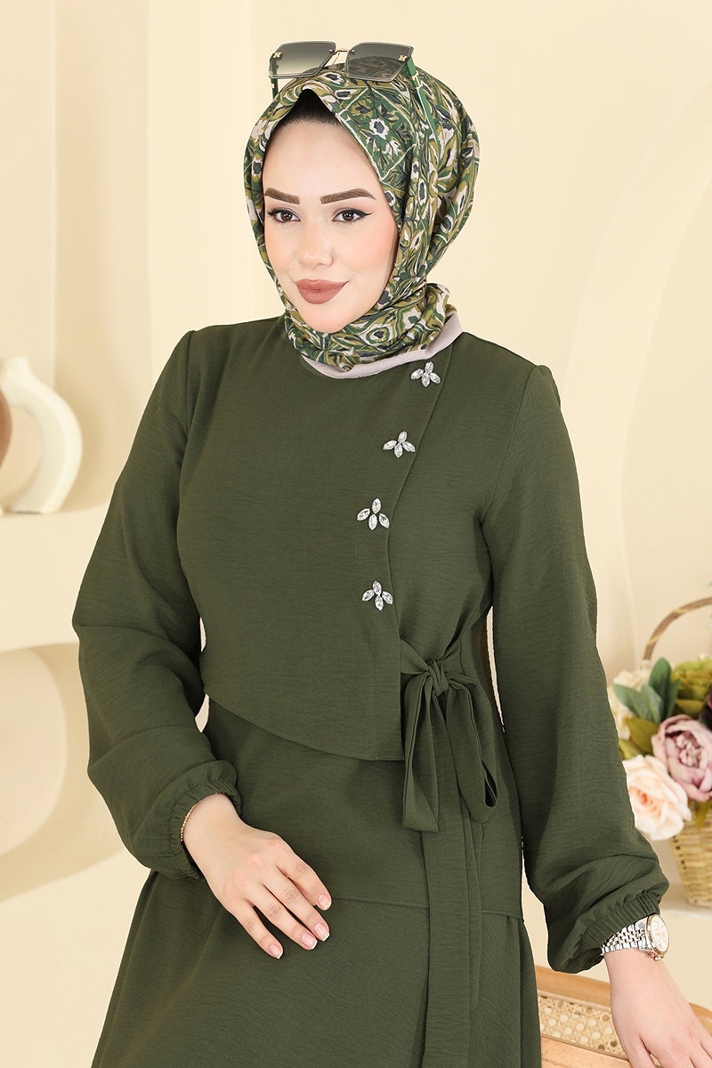 Taş Detaylı Etekli Takım 2844SLK540 Haki