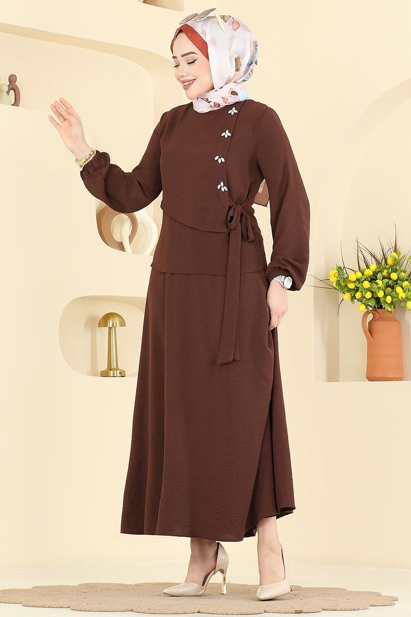 Taş Detaylı Etekli Takım 2844SLK540 Kahve
