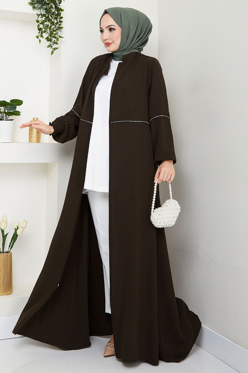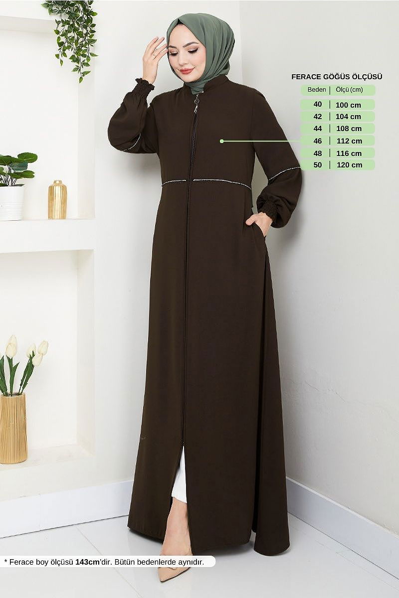 Taş Detaylı Ferace 1006ESL1097-M Kahve