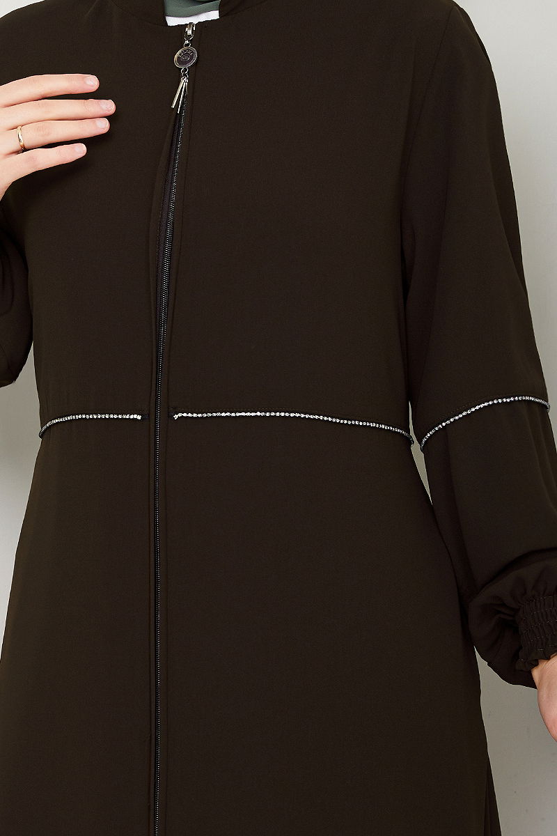 Taş Detaylı Ferace Kahve