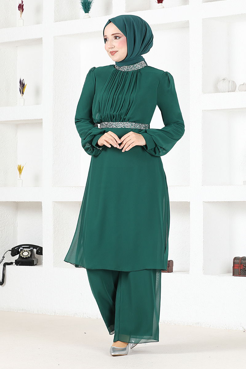 Taş Detaylı İkili Kombin MSL4272-M Zümrüt
