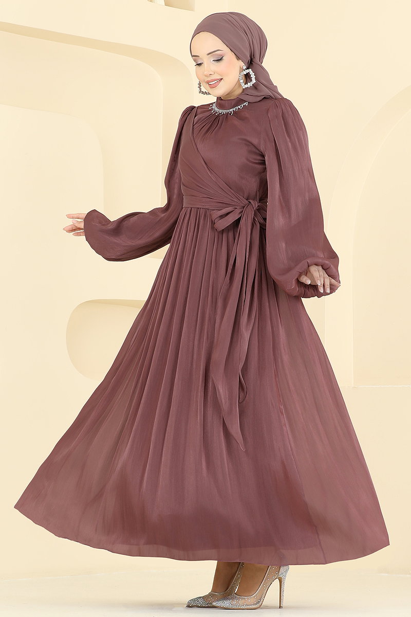 Taş Detaylı Işıltılı Abiye 8162AB368 Gül Kurusu