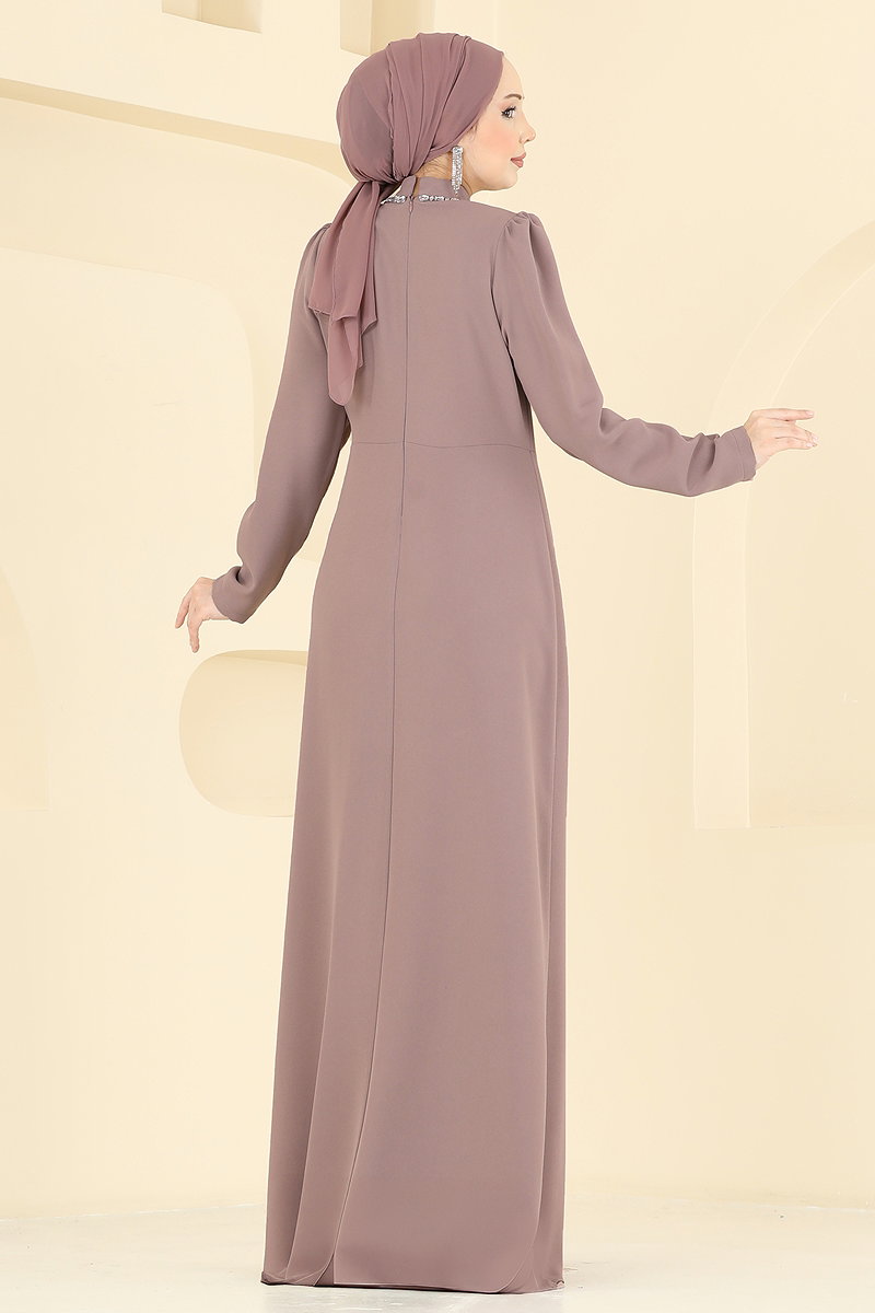 Taş Detaylı Krep Abiye 8116ABK1075 Pudra