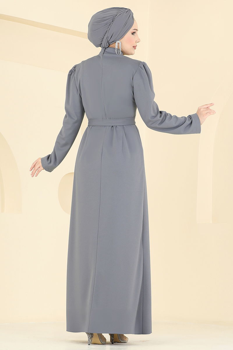 Taş Detaylı Krep Elbise 0846LVA1173 Gri