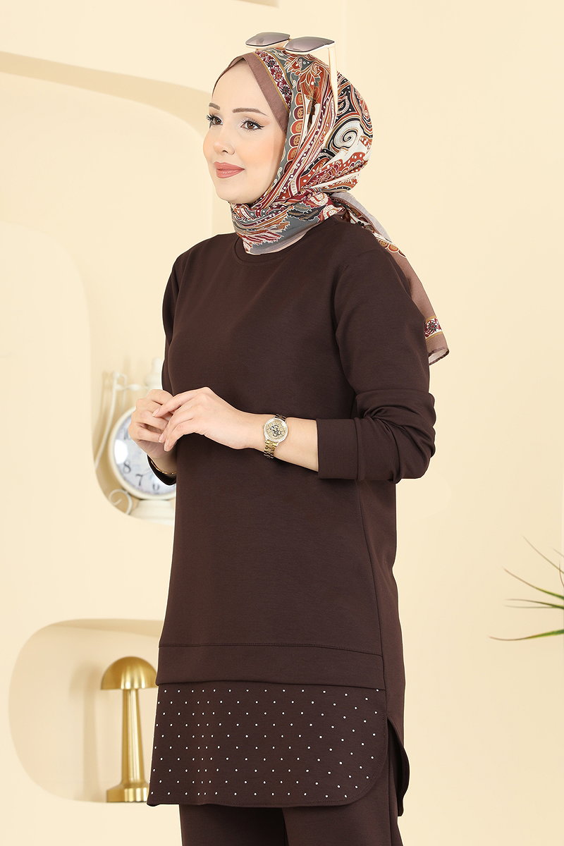 Taş Detaylı Modal Takım 2792AYD574 Kahve