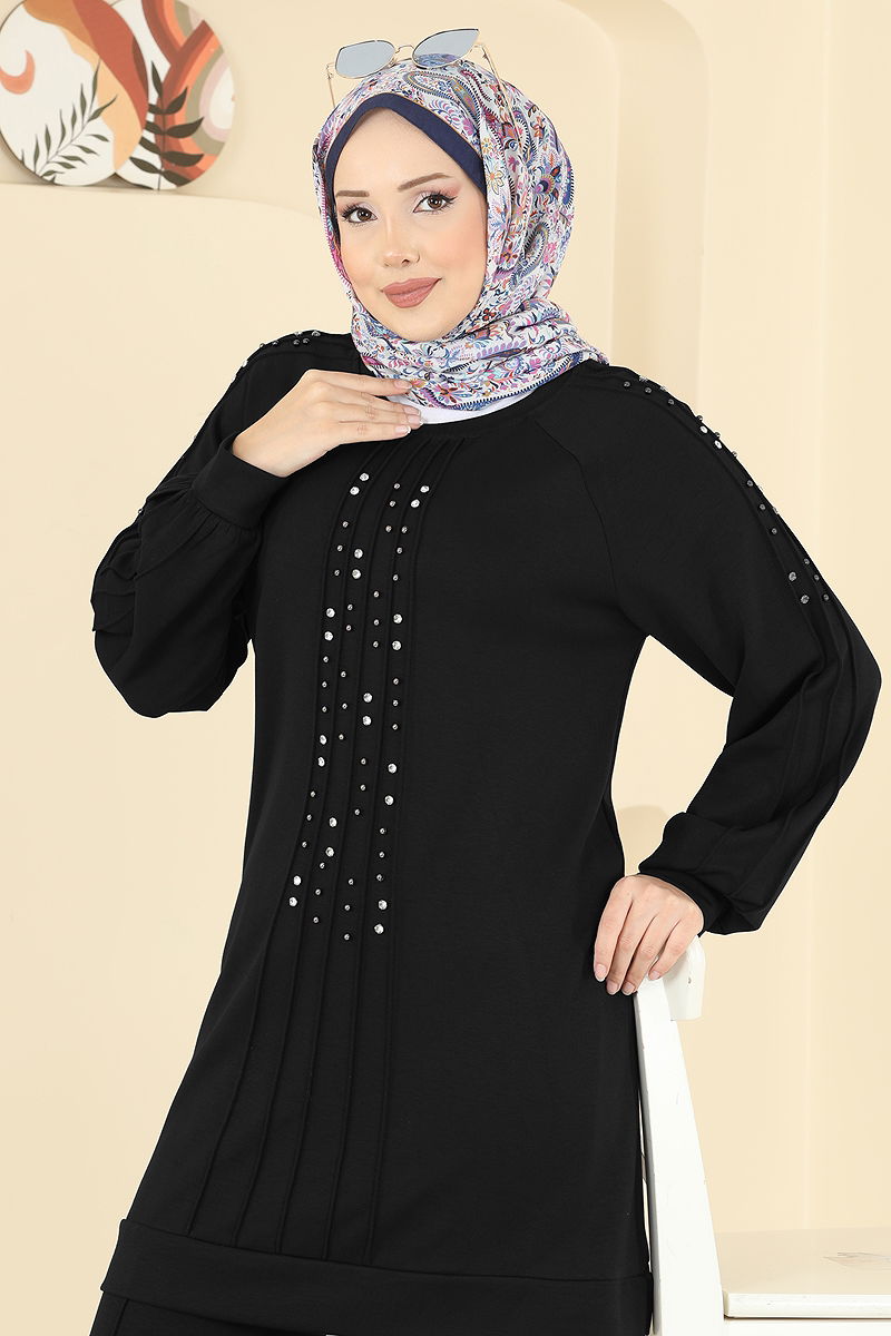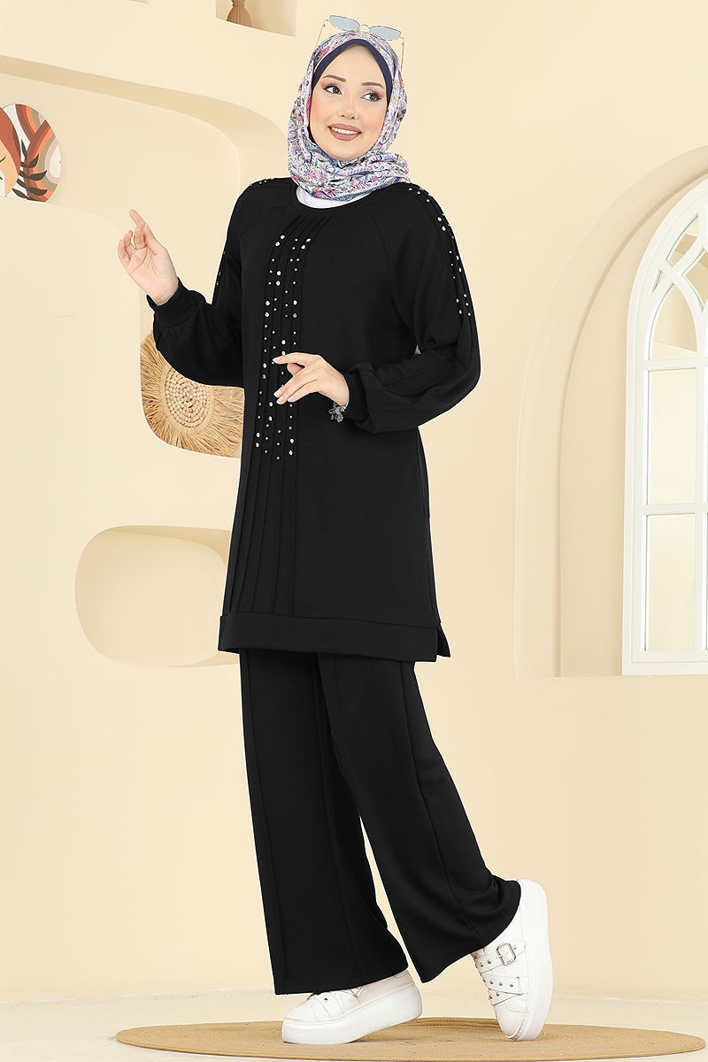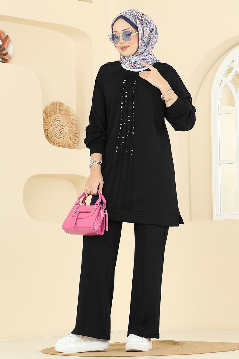 Taş Detaylı Modal Takım 3192HBS856 Siyah